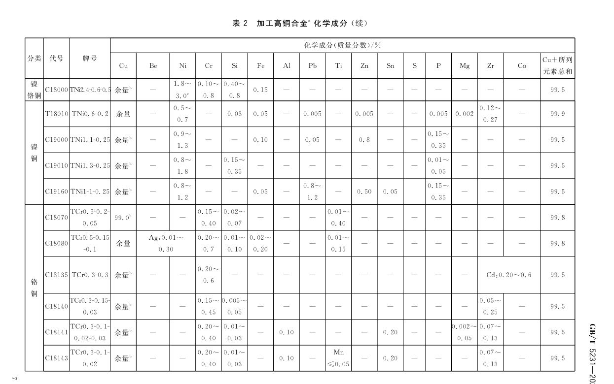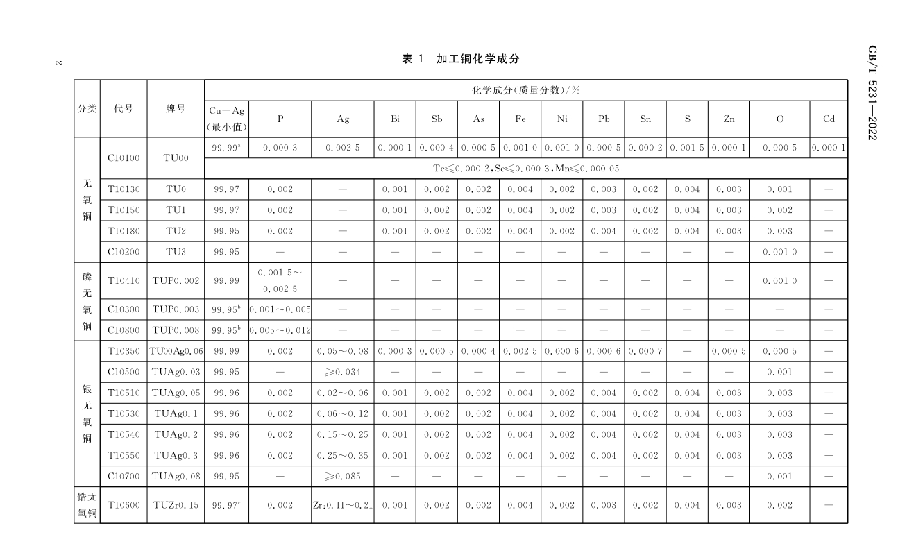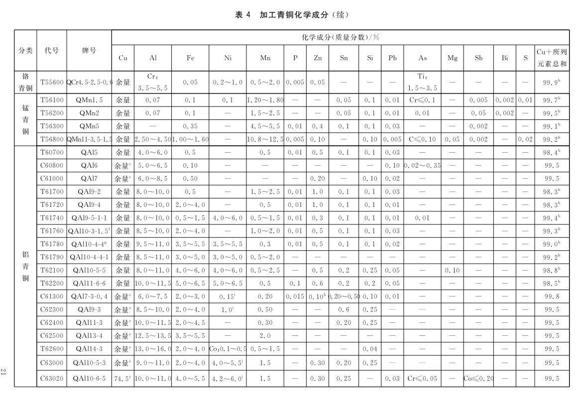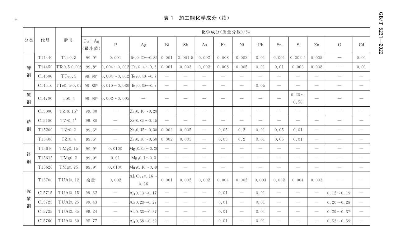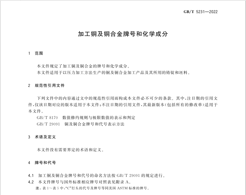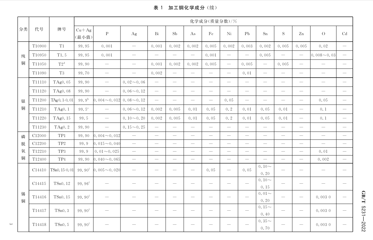 Processing copper and copper alloy grades and chemical composition GB/T5231-2012