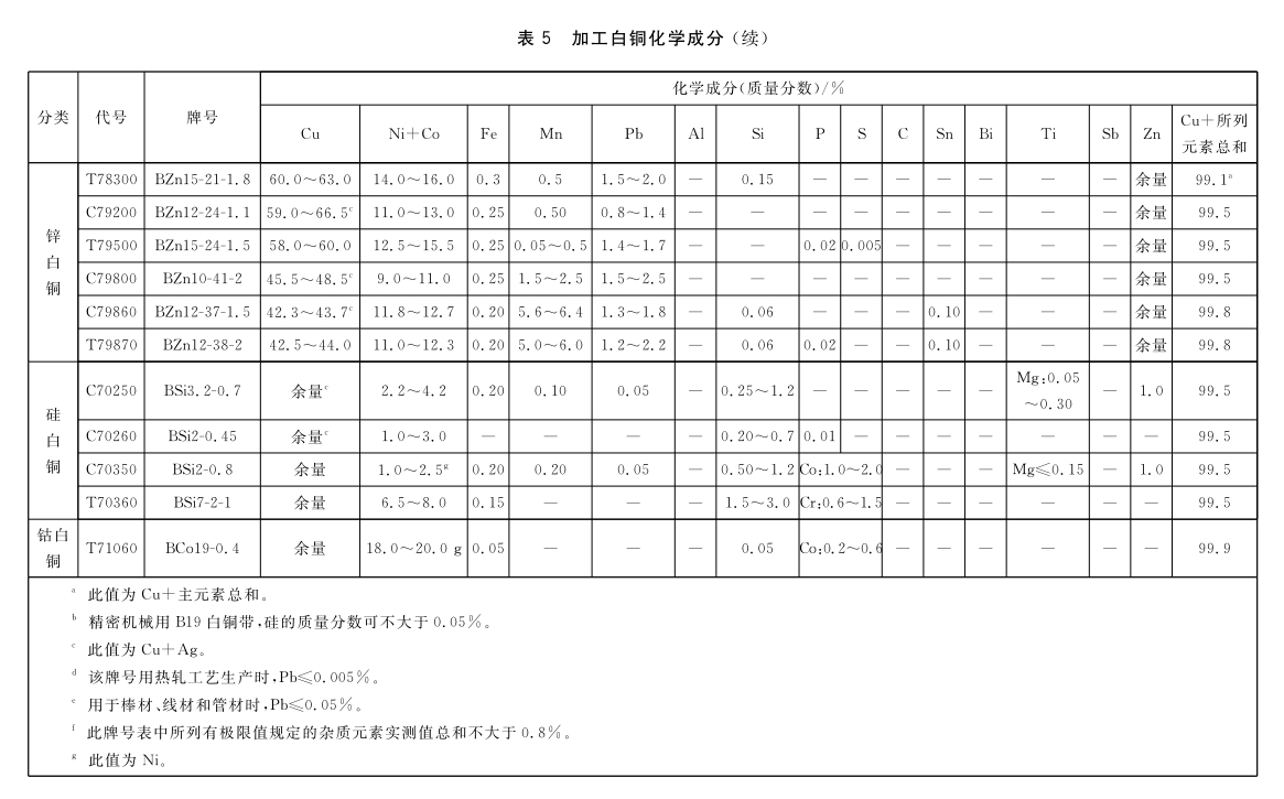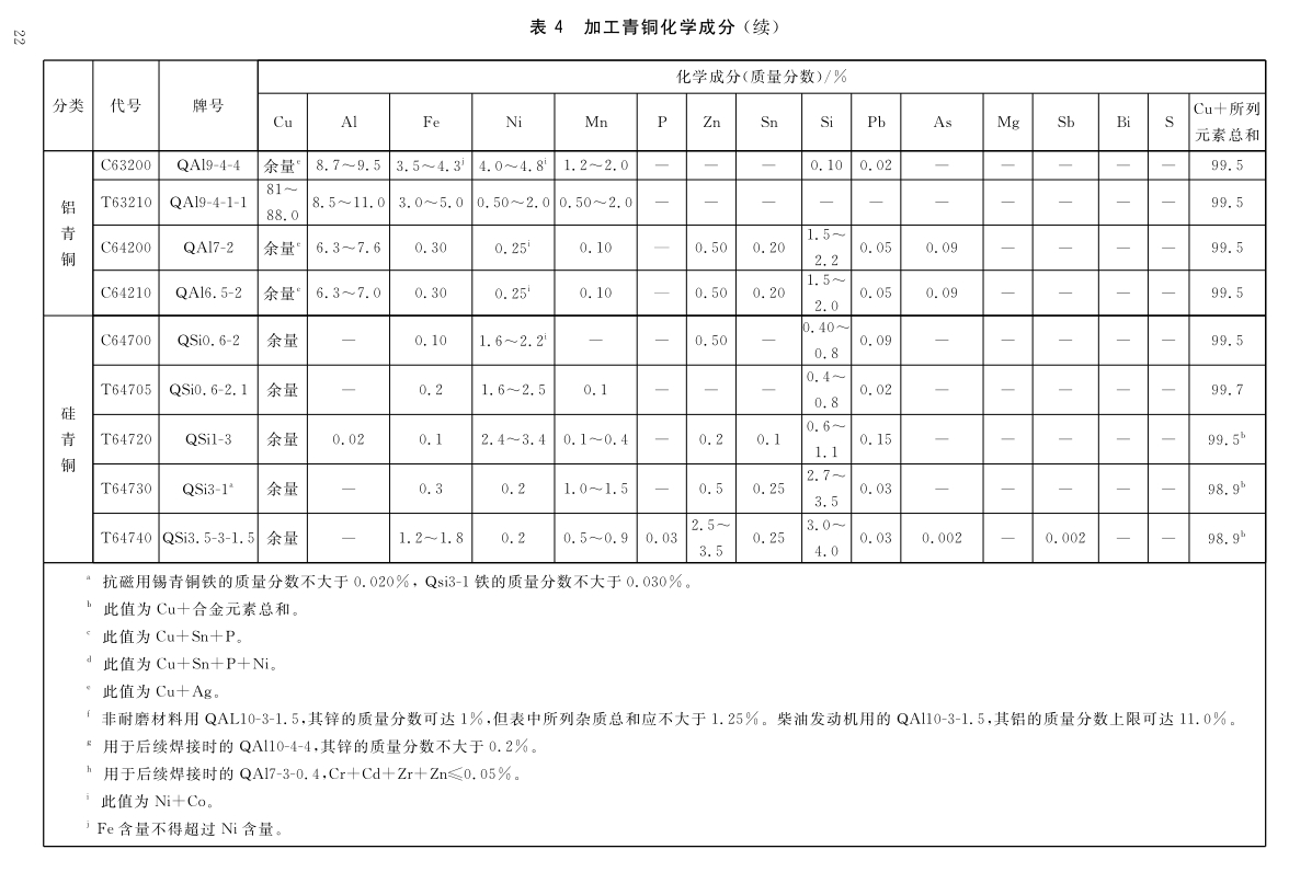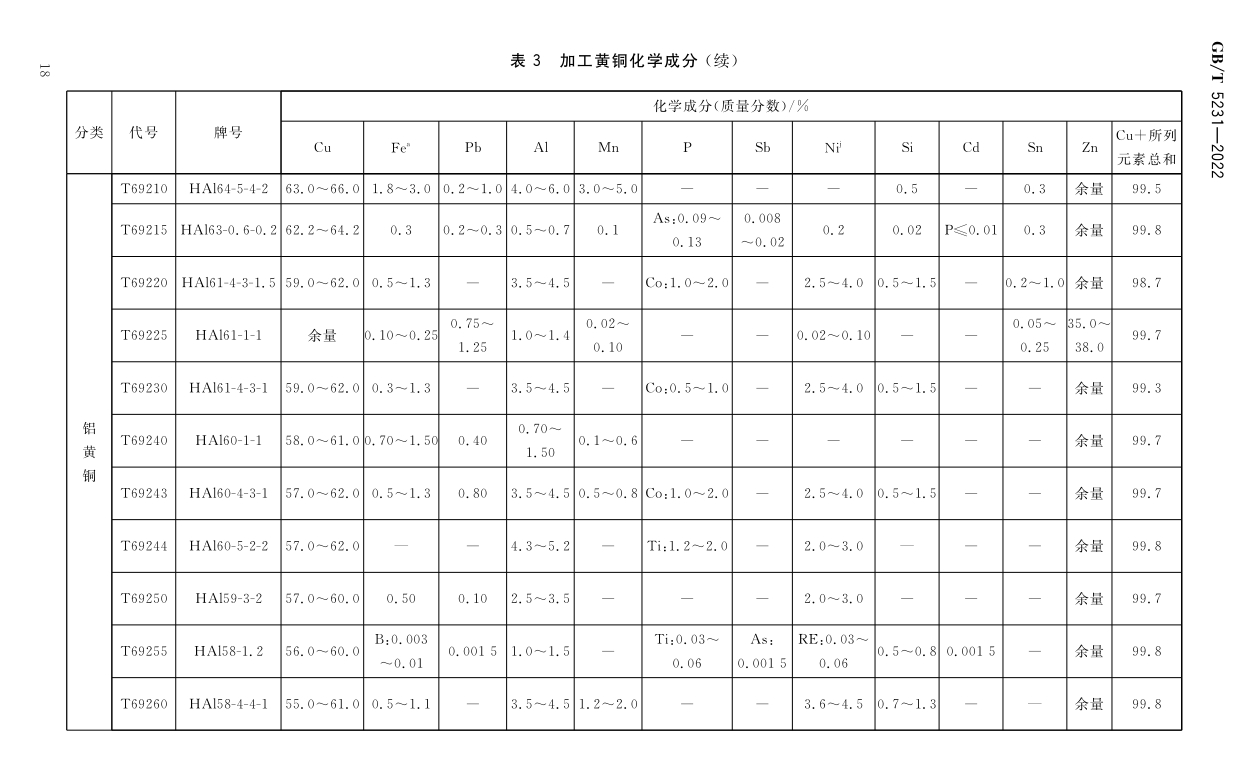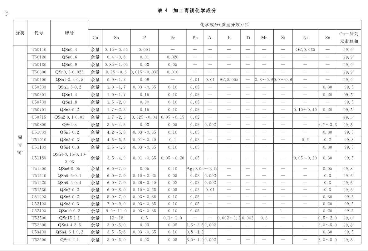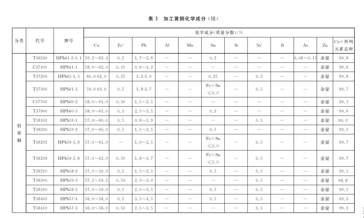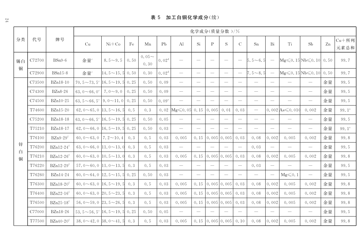 Processing copper and copper alloy grades and chemical composition GB/T5231-2012