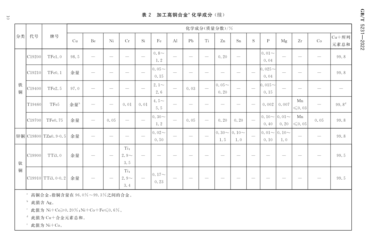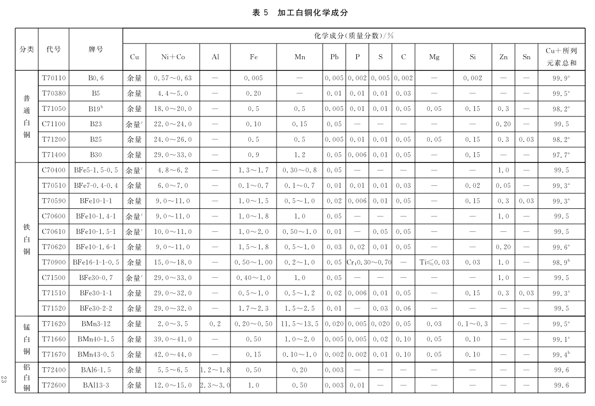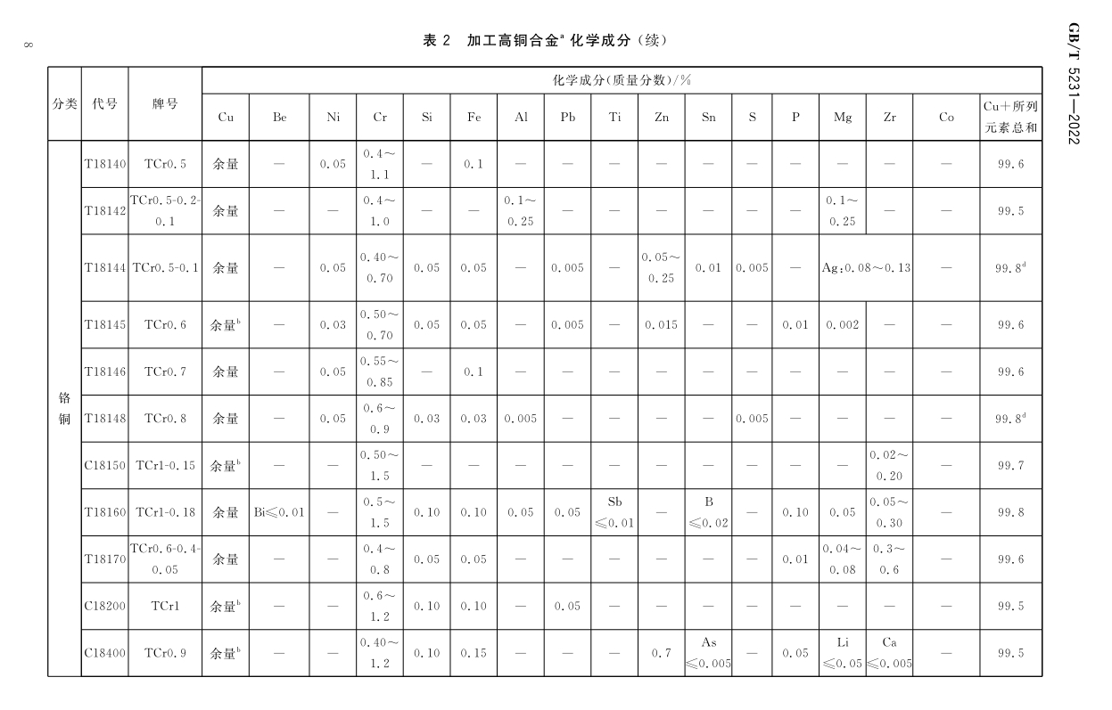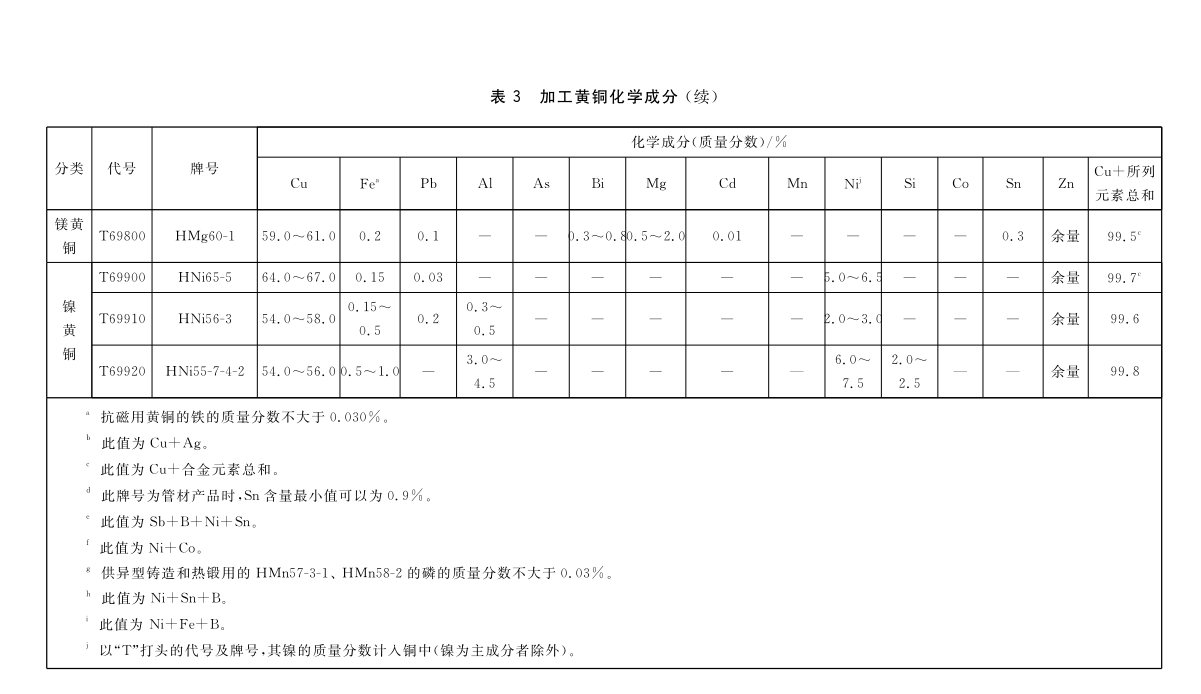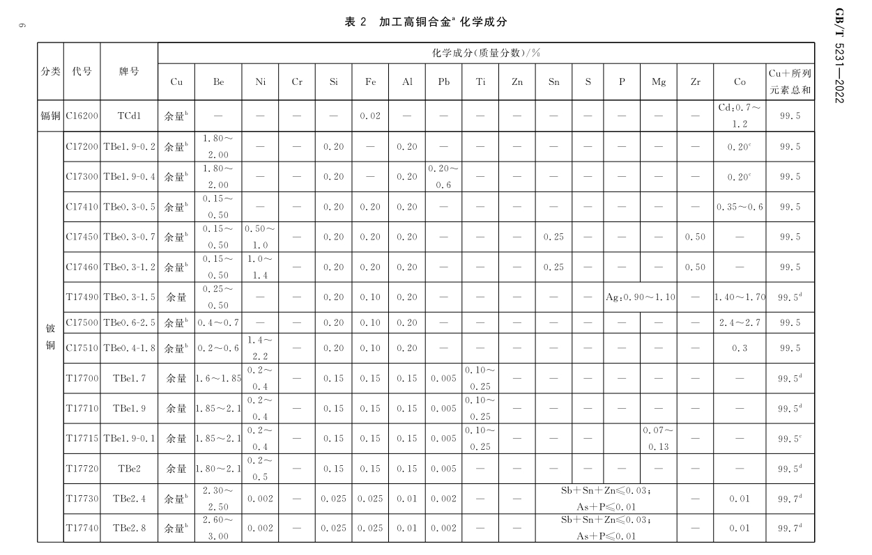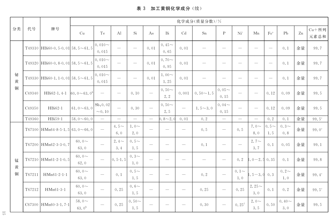Processing copper and copper alloy grades and chemical composition GB/T5231-2012